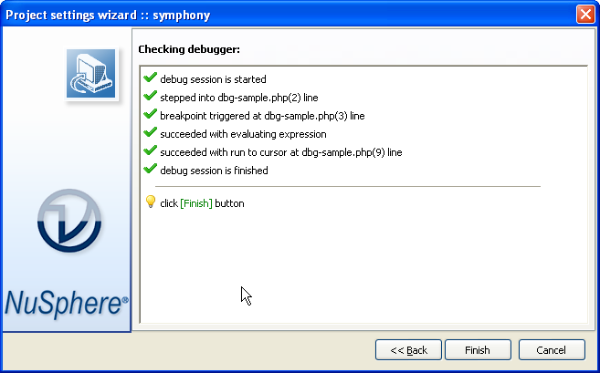 We used PhpED's Project Settings Wizard to setup our Symfony project - wizard starts automatically when you start new PhpED Project and all it takes is clicking the Next button and correctly selecting the root of the Project: