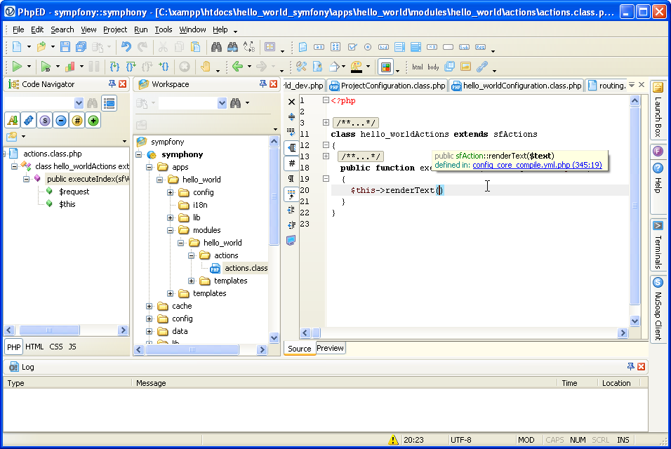 Here we go, Hello World using Symfony and PhpED